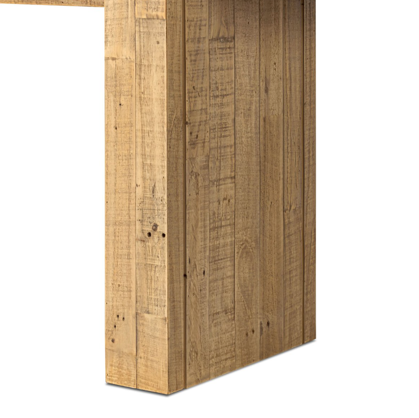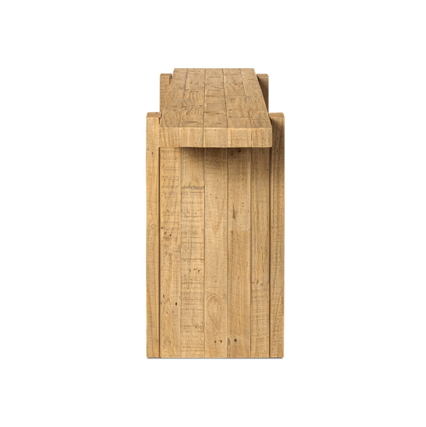 This console table features a light, blonde-finished base and an inset beam-style top that gives it a simple yet intriguing look.