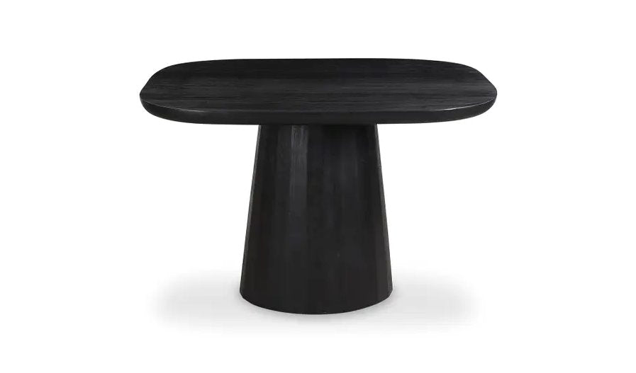 A stunning example of modern aesthetics, the Freed dining table is well-suited for hosting small gatherings. Crafted from solid Acacia wood, the bold silhouette has a large drum-shaped pedestal base and a subtly tapered tabletop edge.