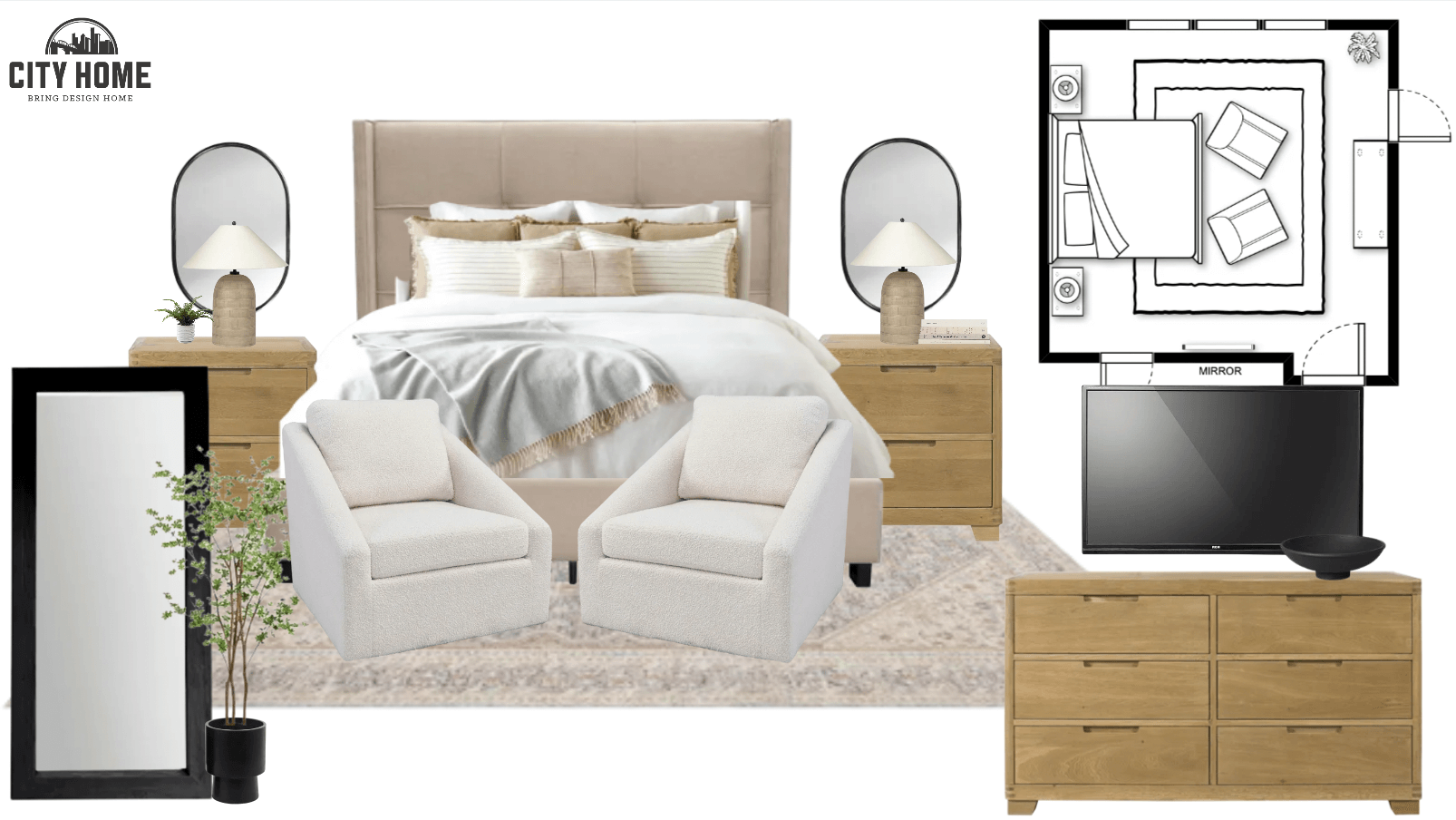 After learning more about you and what you need during the consultation step, our team will get to work planning your space. We'll visit your home to confirm room measurements, fabrics, and colors. We'll also create custom floorplans and design boards. In-home evaluations require a deposit of $129, which can be used towards your purchase of $2,500 or more at City Home.
