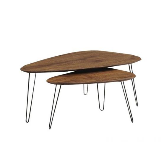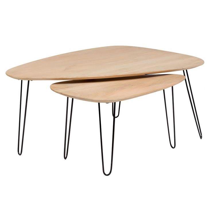Made from solid mango wood, the light finish contrasts elegantly with the black pin legs. The Graphik Nesting Set comes with two tables - adding versatility and function to your living space. Available in two colors.
