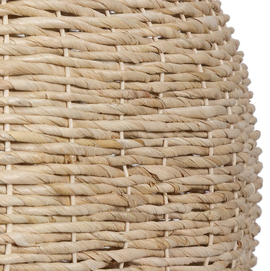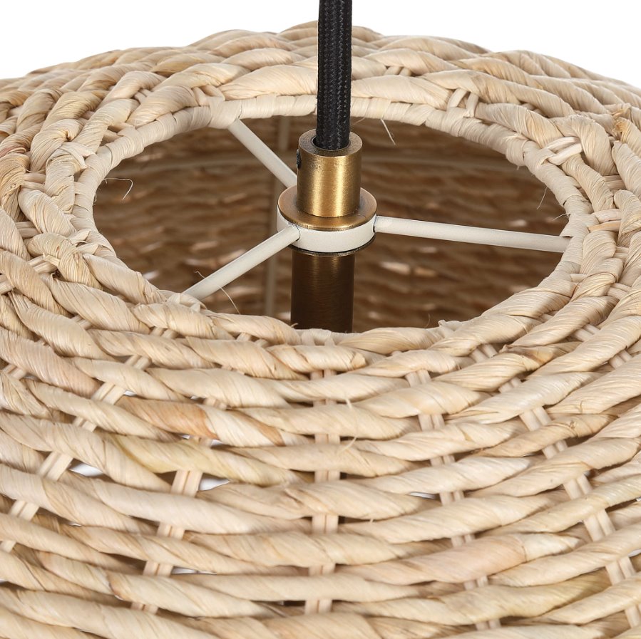 Crafted from woven seagrass – a renewable, sustainable material – this dome-shaped pendant forms around a metal frame with antique brass accents. It adds a touch of texture to any living space. Bulb not included.