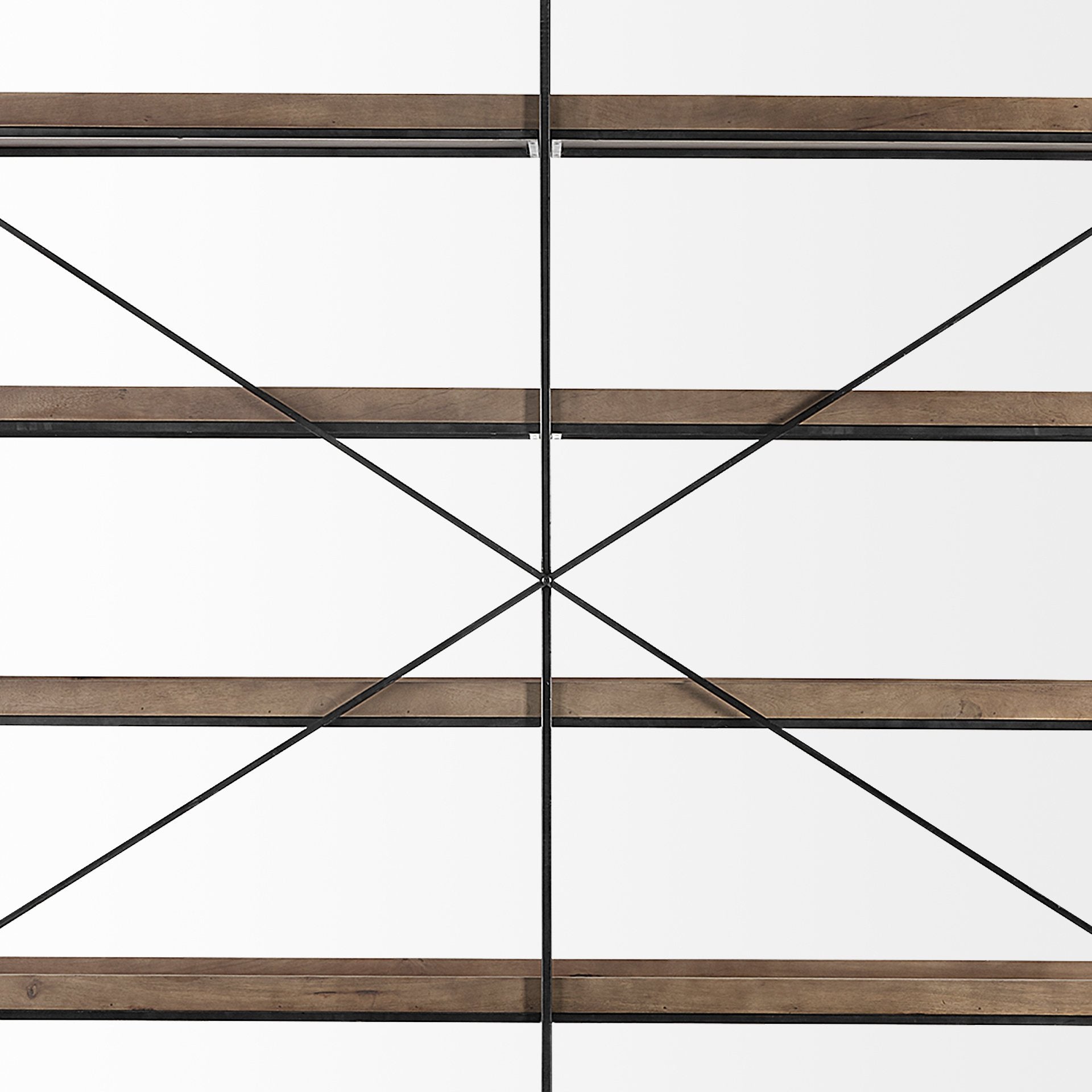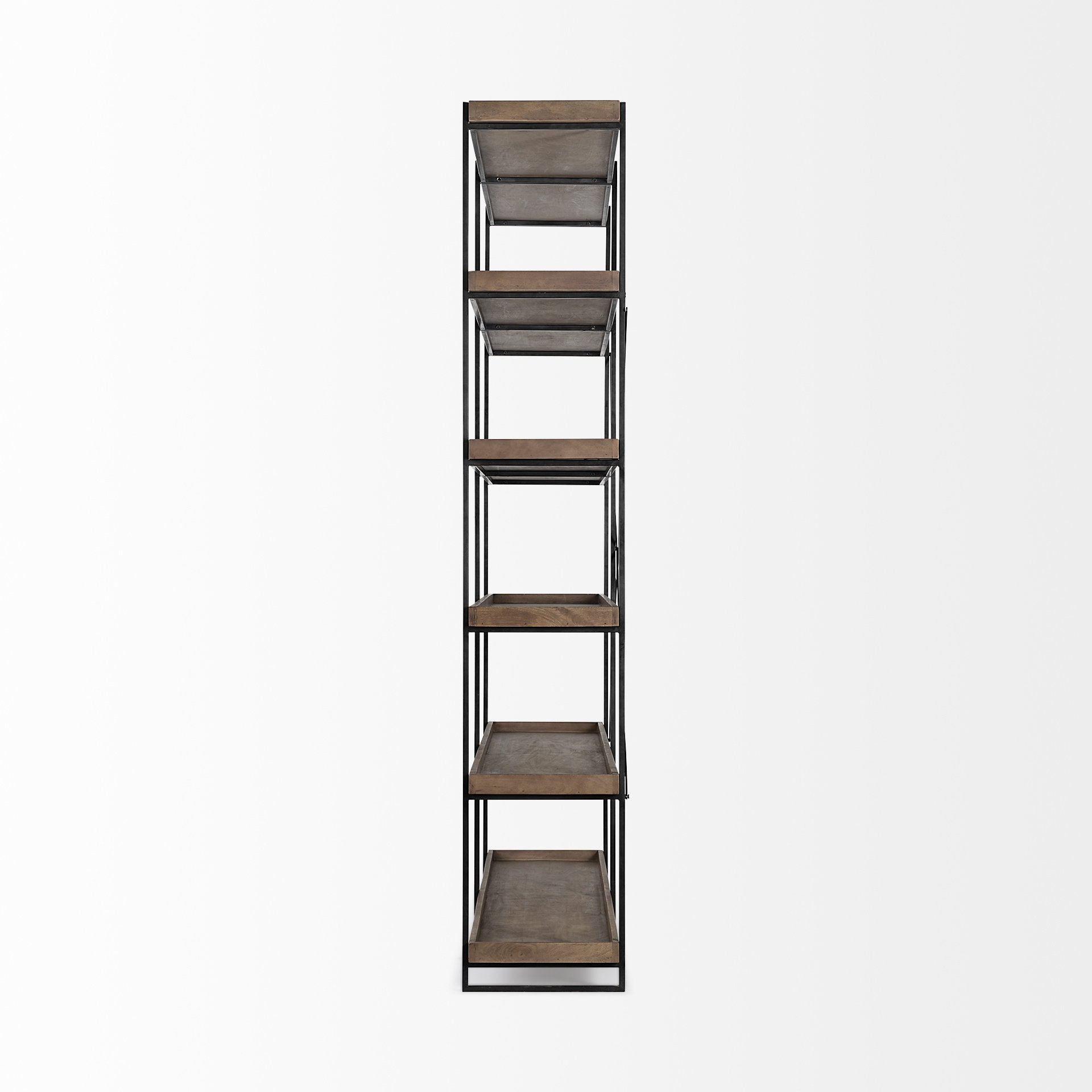 The wooden shelves are vertically stacked and supported by a matte-black toned solid iron frame that not only stabilizes the unit to perfection but also adds to the visuals of this piece.